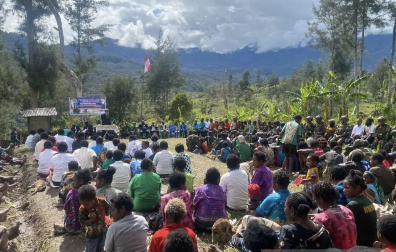 Jakarta - Komando Operasi (Koops) TNI Habema bersama masyarakat Papua melaksanakan Ibadah Gerbang Natal yang dipadukan dengan tradisi Bakar Batu sebagai bentuk ungkapan syukur serta upaya memperkuat kebersamaan dalam