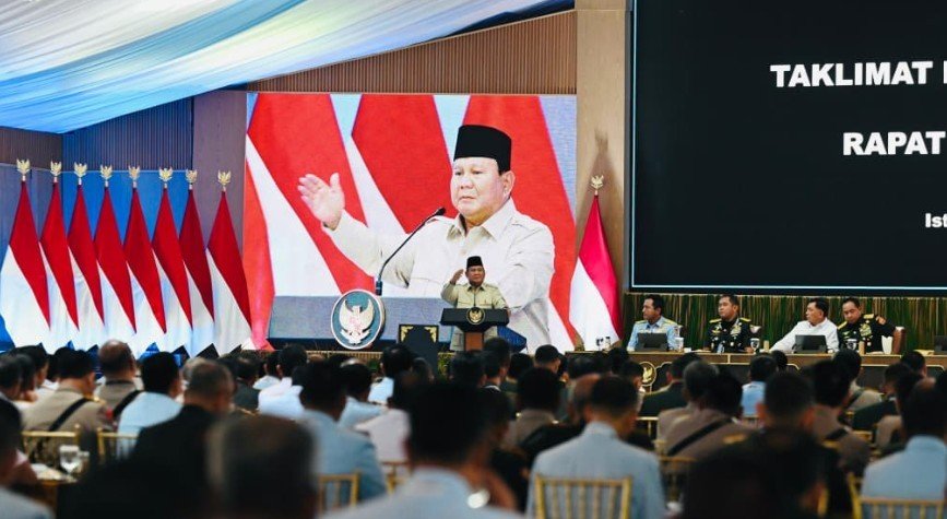 Jakarta, kamerausantara.id – Presiden Republik Indonesia, Prabowo Subianto, memberikan taklimat kepada para peserta Rapat Pimpinan (Rapim) TNI–Polri yang digelar untuk pertama kalinya di Istana Merdeka, Jakarta,