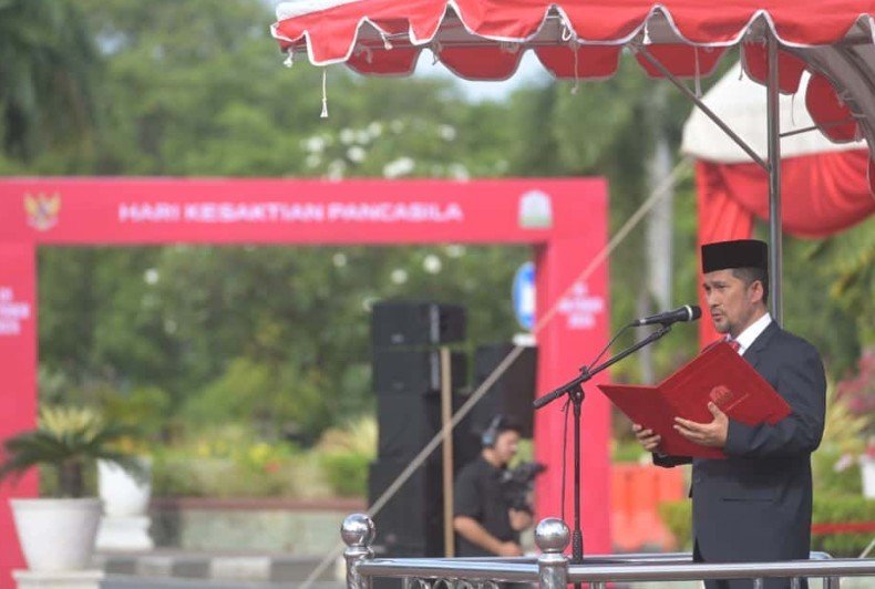 Banda Aceh, kameranusantara.id - Peringatan Hari Kesaktian Pancasila di halaman Kantor Gubernur Aceh, Rabu (1/10/2025), berlangsung tertib dan penuh khidmat. Mengusung tema “Pancasila Perekat Bangsa Menuju Indonesia